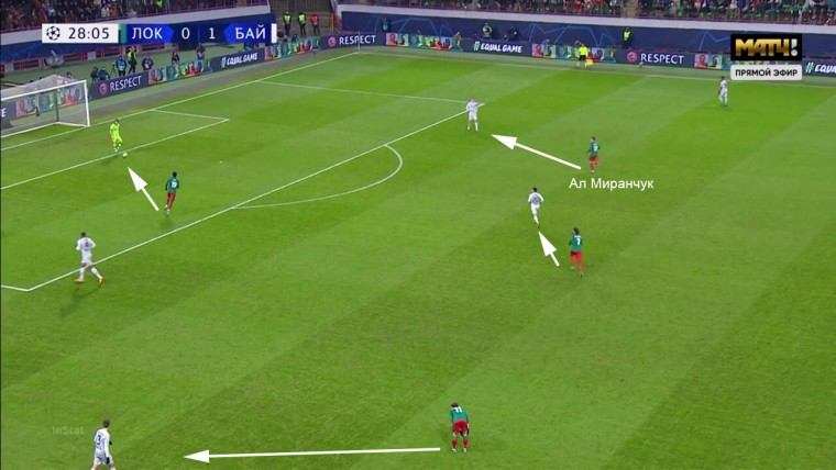 Если прессинг при позиционных розыгрыша «Байера» был слаженным, то давление сразу после потери мяча в своих атаках у «Локо» было хаотичным.