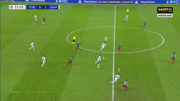 Но голландский тренер пожелал больше скорости в атаке. Вероятно, он ожидал, что дома «Локо» не сможет сыграть так оборонительно как в Леверкузене (там было 22% владения). В таком раскладе вертикальная игра и скорость в атаке – полезные бонусы.