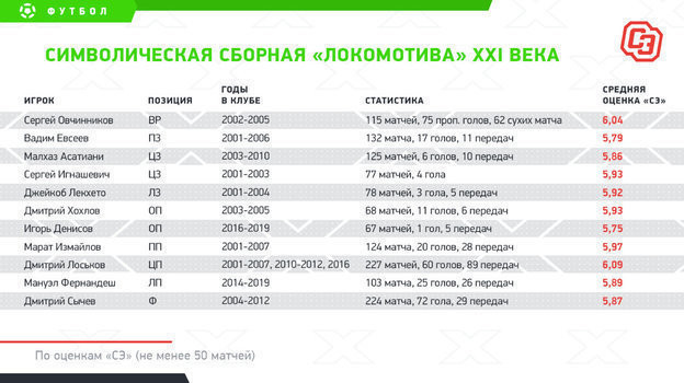 В символическую сборную «Локомотива» в XXI веке так или иначе вошли бы игроки, которые лучший футбол в карьере показывали при Юрии Семине. Исключения всего два. Сергей Игнашевич стал легендой ЦСКА. А Игоря Денисова можно включать в списки лучших всех команд, где он выступал — от «Зенита» до «Динамо».