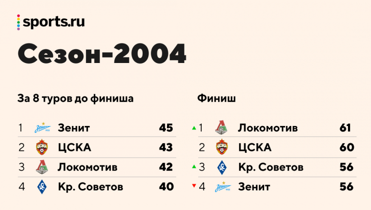 Еще одна боль «Локомотива». К 22-му туру Эштреков шел вообще без поражений, интрига в премьер-лиге почти закончилась. Но дальше необъяснимое: куча ничьих, поражение от «Торпедо» и дикий рывок ЦСКА (потеряли только два очка). При этом для чемпионства Газзаеву тогда хватило и 29 туров.