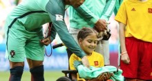Форвард сборной Португалии Криштиану Роналду обменялся подарками с девочкой-колясочницей Полиной.10-летняя девочка сопровождала нападающего «Реала», когда он выходил на матч с командой Росси