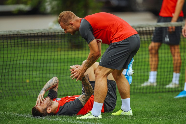 57 fclm.ru 22 августа 2019, четверг, 15:14 Тренировка перед вылетом в Краснодар Веселый Идову, брутальный Саба, татуировки Баринова и привет от Эдера – «Локомотив» готовится к выезду в Краснодар. ATHF Фотографии 070