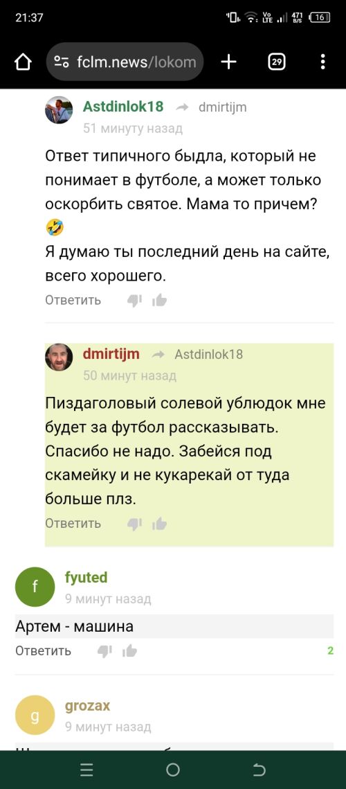 Я ему предъявил за то, что он игрока основы назвал слабым, а он начал нести всякую чушь.