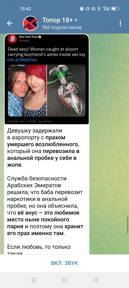 Девушку задержали в аэропорту с прахом умершего возлюбленного, который она перевозила в анальной пробке у себя в жопе.