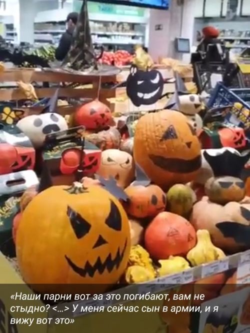 Неравнодушная женщина обыденно шла за покупками, но увидела оформленную к Хэллоуину витрину и устроила детыквинизацию. В декорациях она усмотрела сатанинский культ, нарушение её личных прав и уголовку за оскорбление чувств верующих. Потребовала немедленно всё убрать и пригрозила заявлением в прокуратуру