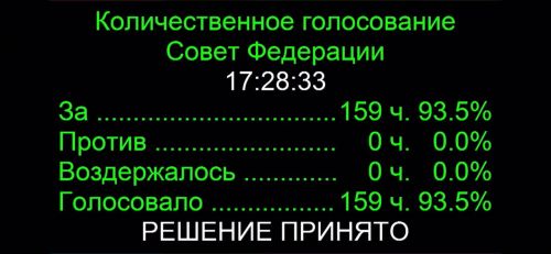 Совет Федерации единогласно утвердил указ Путина о введении военного положения территориях ЛНР, ДНР, Запорожской и Херсонской областей