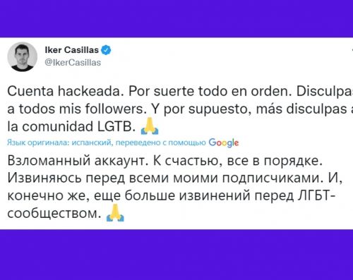 Футболист Икер Касильяс заявил, что его взломали.