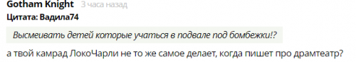 LokoCharly, ты опять провоцируешь? И с той и с другой стороны дети гибнут вообще-то, с этим спорить будешь?