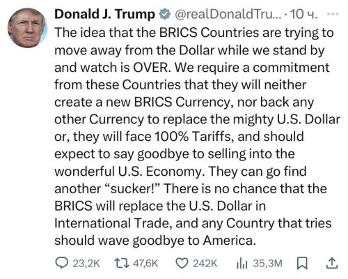 vorkuta88, похоже, что заморский господин намекает на то, что пора пересмотреть свои приоритеты и поближе присмотреться к БРИКС. А вообще, судя по всему, заморский господин решил, что игра в одни ворота уже не так увлекательна. Интересно, как это отразится на мировых раскладах.