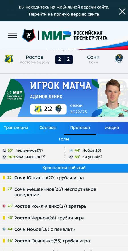вот протокол матча с сайта лиги