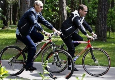 Вадила74, Россия это старомодный велосипед-тандем с несменяемым рулевым, а тех кто едут сзади и начинают пинаться, скидывают и переезжают