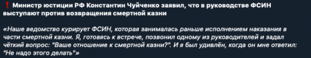 Левая_Нога_Сычёва, Ещё раньше Зорькин (глава КС) заявил, что для смертной казни надо принимать новую конституцию. Походу дали распоряжение сверху. Теперь они по очереди будут выступать против.