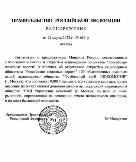 ⚡️Правительство одобрило продажу "Российскими железными дорогами" футбольного клуба "Локомотив"