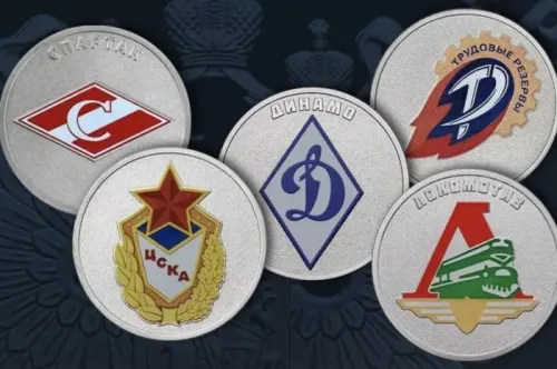 Банк России выпустит памятные монеты номиналом 25 рублей с эмблемами "Динамо", "ЦСКА", "Локомотива", "Спартака" и "Трудовых резервов".