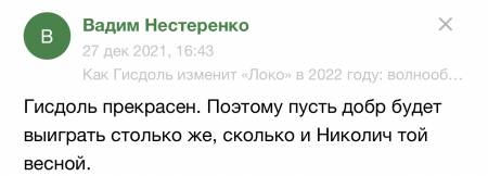 Pozych, вся суть. Обсуждаем как хваленный вами Гисдоль проигрывает 5 матчей подряд, вы защищаете его вспоминая как однажды Николич проиграл Ротору. Казалось бы, при чем тут Николич?