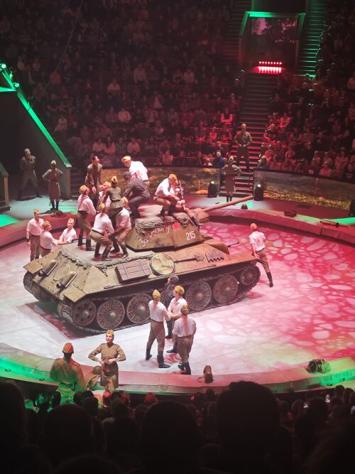 Знаете, цирк — это место, где возможно все. Кто бы мог подумать, что сочетание танка и цирковых представлений может стать реальностью? Но ведь жизнь полна сюрпризов! А как вы думаете, что еще необычного могло бы появиться на арене цирка? Может, это гигантские воздушные шары, на которых дрессированные коты исполняют трюки, или акробаты, балансирующие на летающих скейтбордах? Давайте помечтаем и создадим свой собственный цирк чудес! 🎪✨