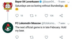 «Держите мое пиво». «Байер» и «Локомотив» обменялись репликами в твиттере
