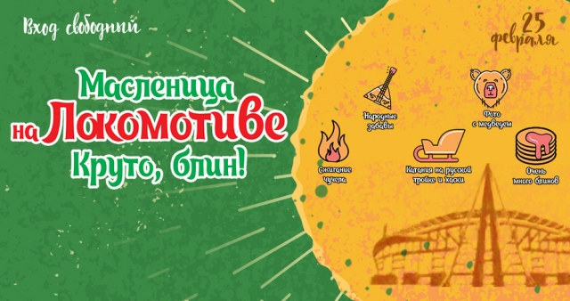 25 февраля на нашем стадионе состоится празднование Масленицы. Мы приглашаем вас отлично провести время и встретить весну с любимым клубом! Вас ждут развлечения для всей семьи – уличные г