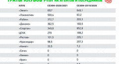 Из отчета РФС стал известен объем средств, которые клубы РПЛ тратят на футбольных агентов. Лидером по тратам на данное направление по итогам сезона-2020/21 стал «Зенит» — 652 млн рублей (в сезоне-2019/20 — 649,1 млн). Вторым оказался «Локомотив» — 500,4 млн против 63,2 млн год назад. Траты «Рубина