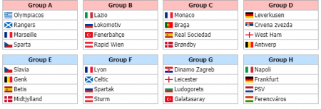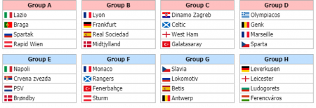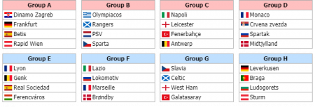 В первую корзину попали «Лион», «Наполи», леверкузенский «Байер», «Лацио», загребское «Динамо», а также клуб, который проиграет в противостоянии отбора Лиги чемпионов «Шахтёр» — «Монако». Окончательный состав корзин Лиги Европы определится после завершения квалификации турнира.
