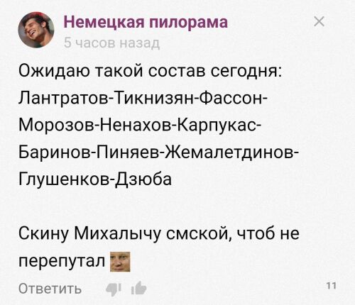 «Локомотив»: Лантратов, Тикнизян, Фассон, Морозов, Ненахов, Карпукас, Баринов (К), Жемалетдинов, Пиняев, Глушенков, Дзюба.