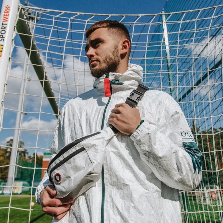 Дизайнеры со вниманием отнеслись к деталям и тканям. Например, джемпер завершен вывязанными манжетами, а пряжа из смесового хлопка придает ему особую мягкость. Для поло выбрали плотный трикотаж, декоративную тесьму и брендированные пуговицы, а для ветровок — современный мембранный материал TYVEK, легкую и прочную защиту от непогоды. Жилет железнодорожника характерного кричаще-красного цвета выполнен из водонепроницаемой ткани, а внутри размещен лейбл для персонализации именем владельца и списком пробитых выездов. Аналогичный лейбл есть и на ветровке. Идентичность дизайну добавляют шевроны в цветах «Локомотива».