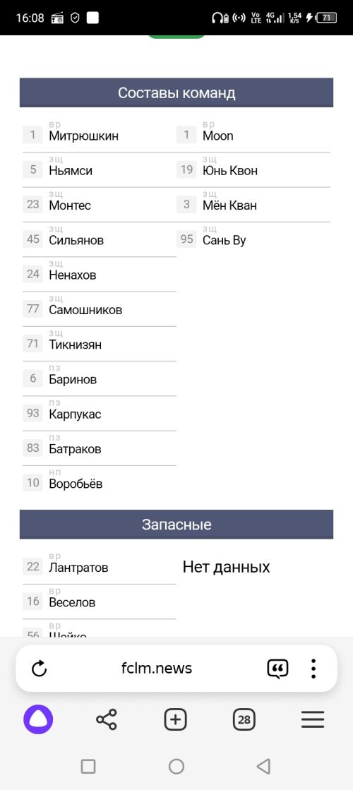 «Локомотив» (1-й тайм): Митрюшкин, Сильянов, Монтес, Ньямси, Ненахов, Баринов (К), Карпукас, Батраков, Тикнизян, Самошников, Воробьёв (Раков, 11).