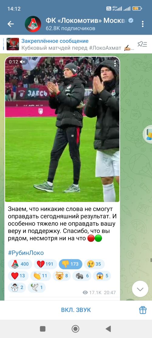 «Локомотив» поблагодарил своих болельщиков за поддержку после поражения от «Рубина» в матче 24-го тура РПЛ.