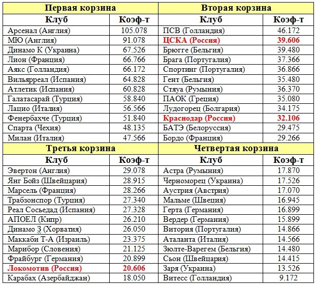 Из-за низкого коэффициента «Локомотив» попадает только в третью корзину. Впрочем, есть вероятность, что поднимется выше – в квалификации могут вылететь клубы с более высоким рейтингом.