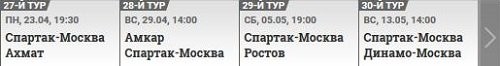 У "Спартака" календарь довольно щадящий. Встречи с "Ахматом", "Амкаром", "Ростовом" и "Динамо", три из которых - на своём стадионе. Если после вылета из кубка России москвичи не падут духом и не сбавят темп, вполне возможно, что наберут все 12 очков. В классе противники уступают многократно.