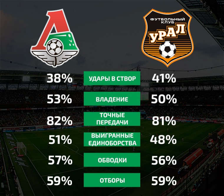 «Локомотив» превосходит «Урал» практически по всем основным показателям InStat, кроме ударов в створ. Екатеринбуржцы не так часто бьют по воротам – 11,4 удара в среднем, но редко промахиваются – 41% в створ. Точнее «Урала» только «Зенит» - 42%.
