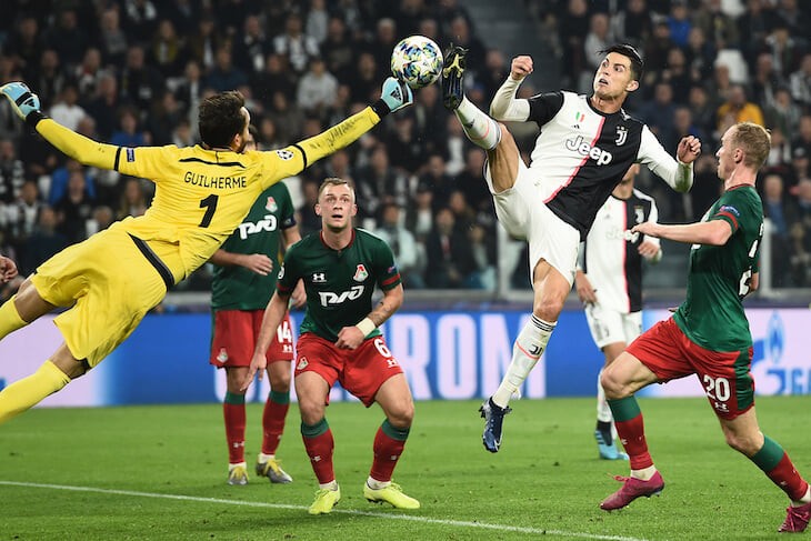 Удар Роналду просто другой. Он непонятный – его сложно поймать. Мяч у него падает быстро, он совсем другого качества. Хотя иногда летит и прямо. Заранее не изучал, но я каждую неделю уже сколько лет смотрю, как он играет. Не слежу именно за ним, но такого великого игрока все время показывают, я наблюдаю.